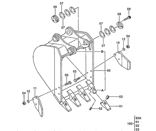 【CAT】E120Bバケット部品図
