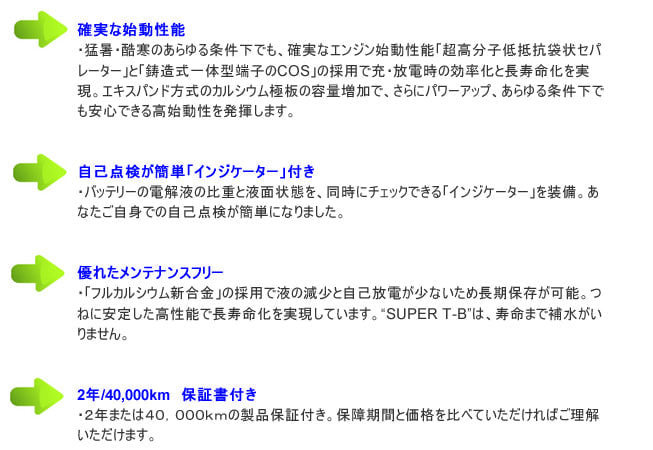 高性能、高効率バッテリー「SUPER TB」の特徴