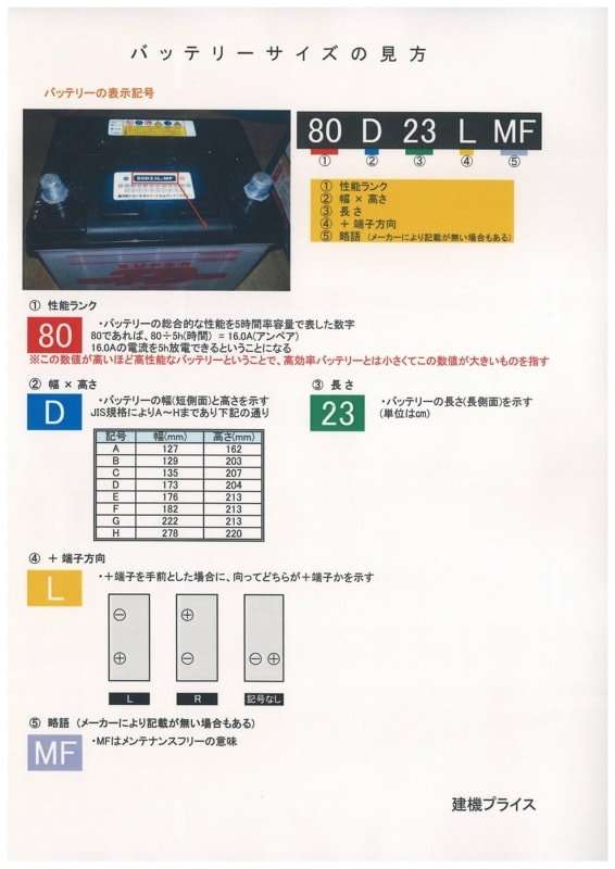 バッテリーサイズの見方