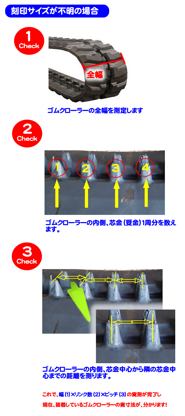 | クローラー幅 | リンクピッチ | リンク数 (芯金の列数) |