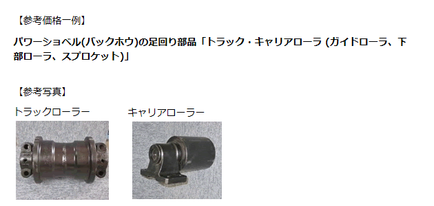 各メーカー パワーショベル(バックホウ)の足回り部品「トラック・キャリアローラ