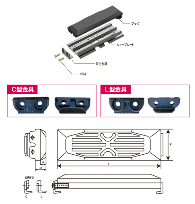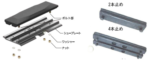 ○通常の縦止めボルトタイプ(2本止め、4本止め)の他にシュープレートに取付穴が無い