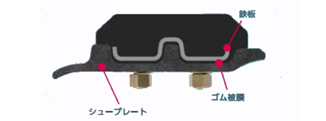 また、鉄シューとの密着性が良くなり取付ボルトの緩みも発生し難くなりました。