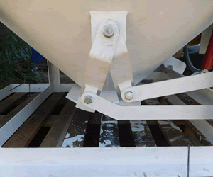 ペダルを踏むとバケット底部の蓋が開閉し、生コンクリートの排出を行います。